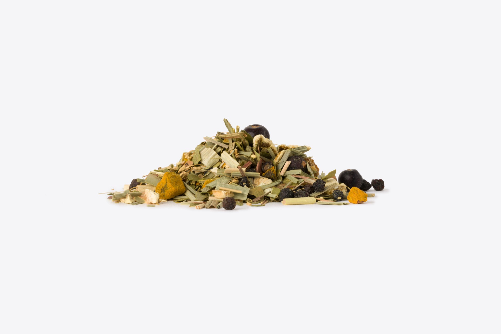 Denne velbalanserte urteteen kombinerer kraftfulle røtter, urter og krydder kjent for sitt naturlige innhold av antioksidanter. Ingefær, sort pepper og gurkemeie gir varme og dybde, mens sitrongress og søt appelsin tilfører friskhet og balanse. Resultatet er en aromatisk, krydret og oppløftende urtete – helt uten koffein.